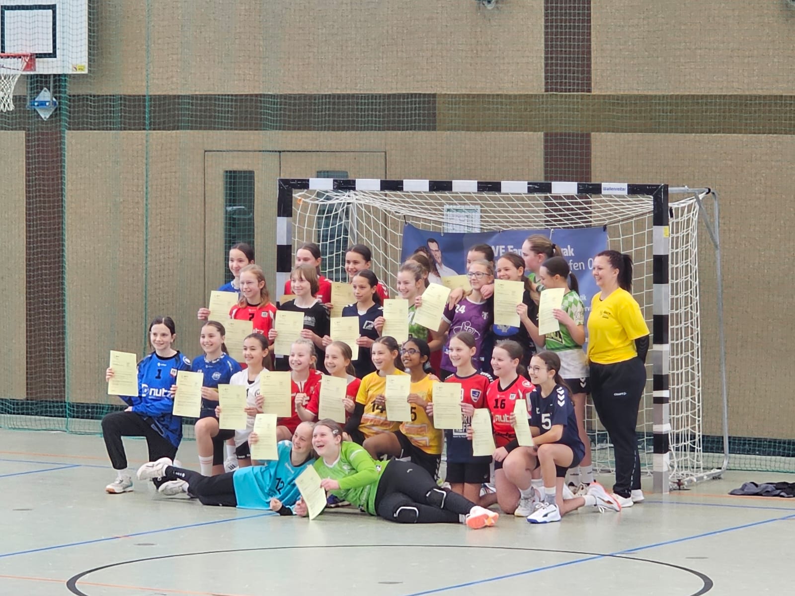 Bei dieser Sichtung können alle Spielerinnen des entsprechenden Jahrgangs ihr Können unter Beweis stellen. Auf dem Programm standen verschiedene Kraft- und Koordinationsübungen, kleinere Angriffs- und Abwehrformen sowie Spielformen wie 3:3 und 4:4. Den Abschluss bildete ein Spiel, in dem die Mädchen noch einmal alles zeigen und sich den Trainerinnen und Trainern präsentieren konnten.
